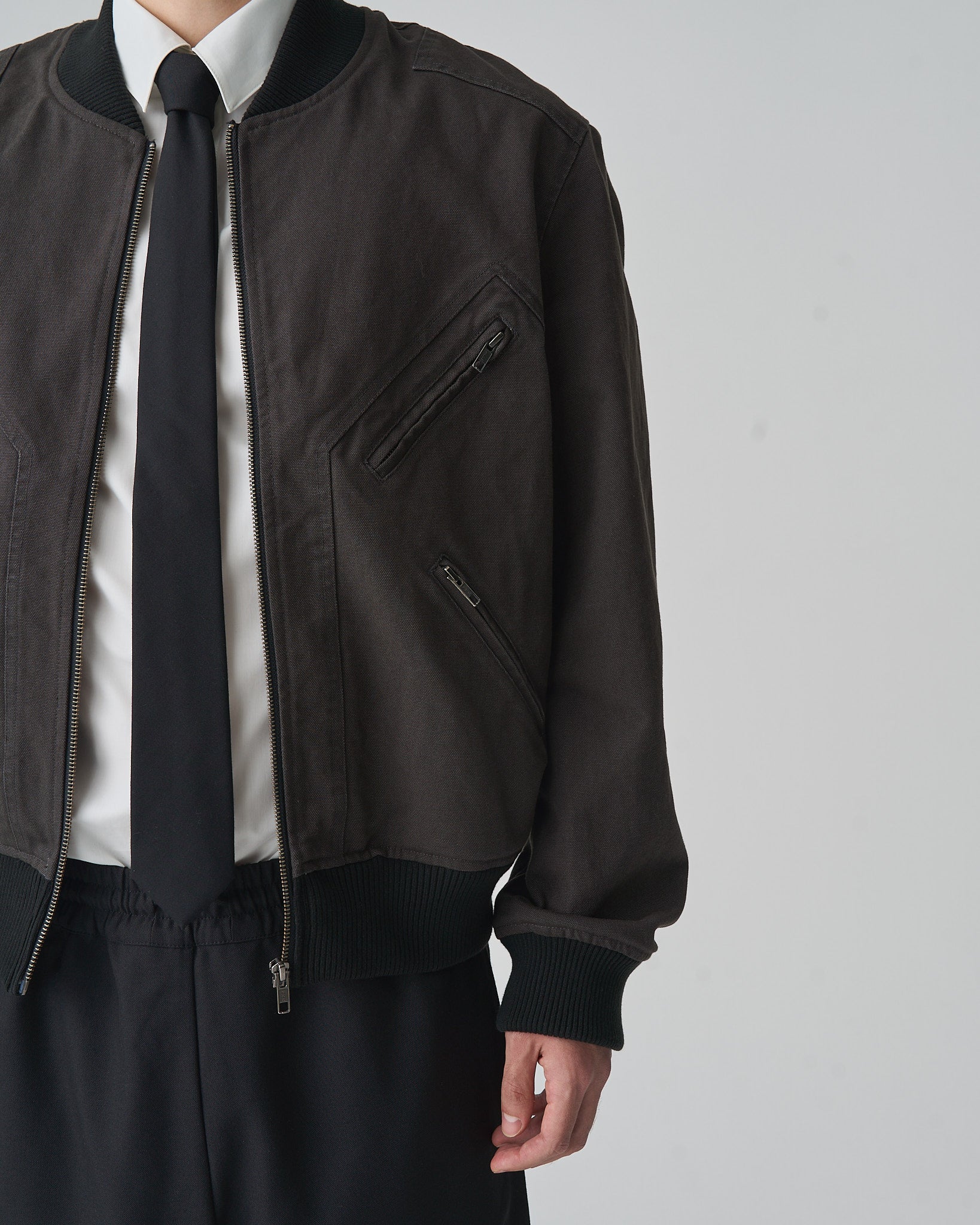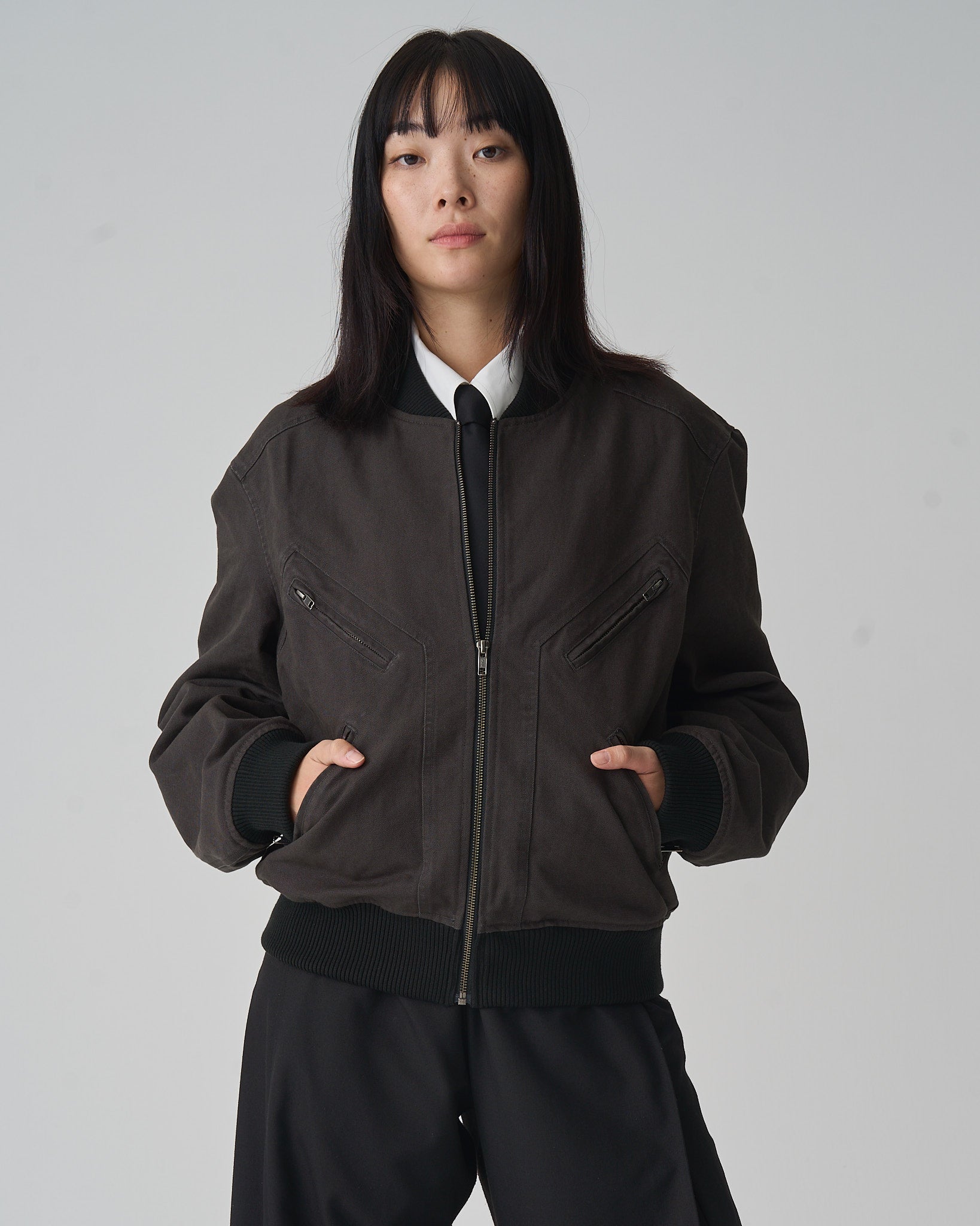 Cut with a wide, boxy silhouette. The cotton canvas gives a structure in the body and the 'croissant' arms, but will continue to soften with use. Cotton lined. Single zip closure.