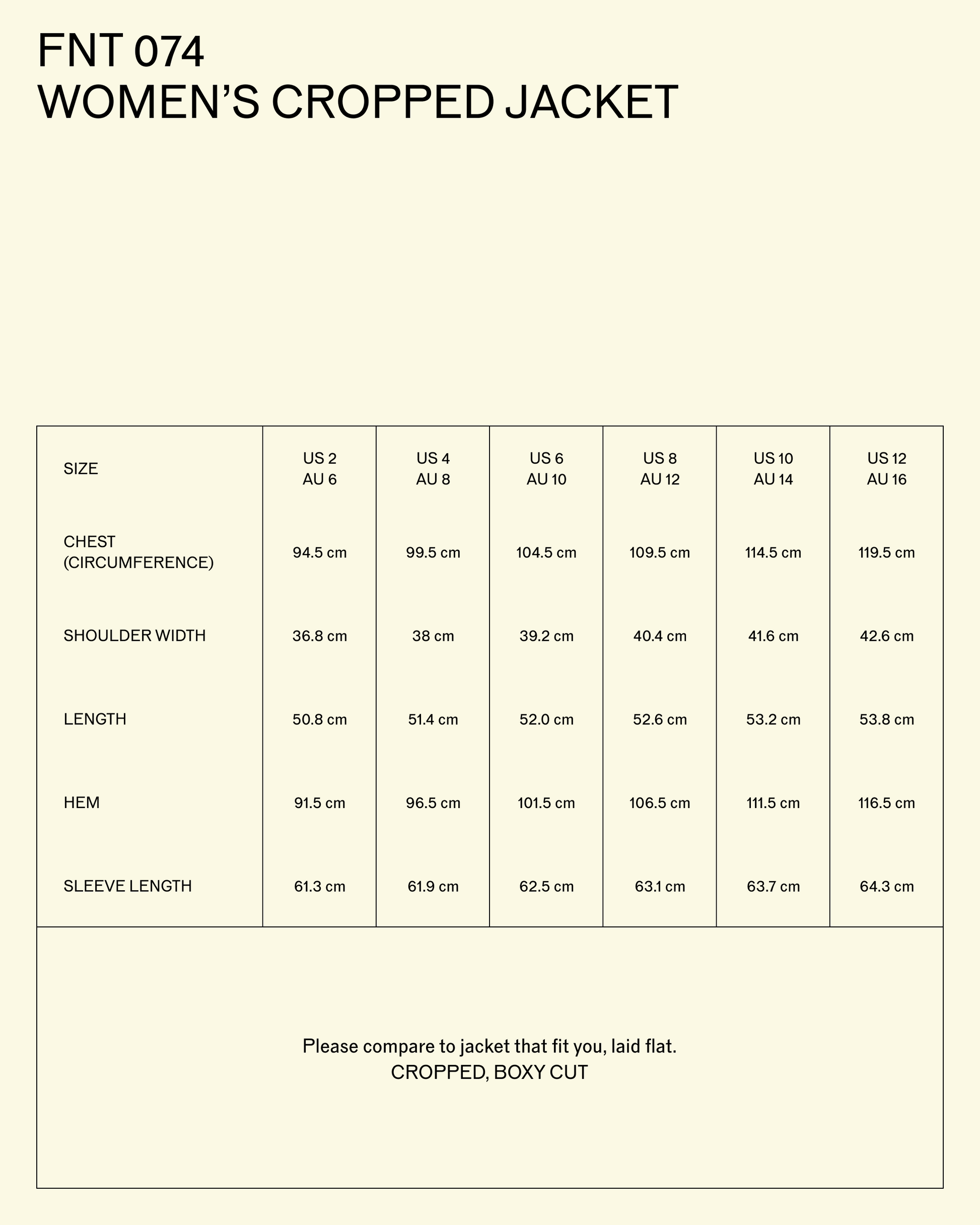 Please refer to a garment that fits you and compare it to the provided size chart.