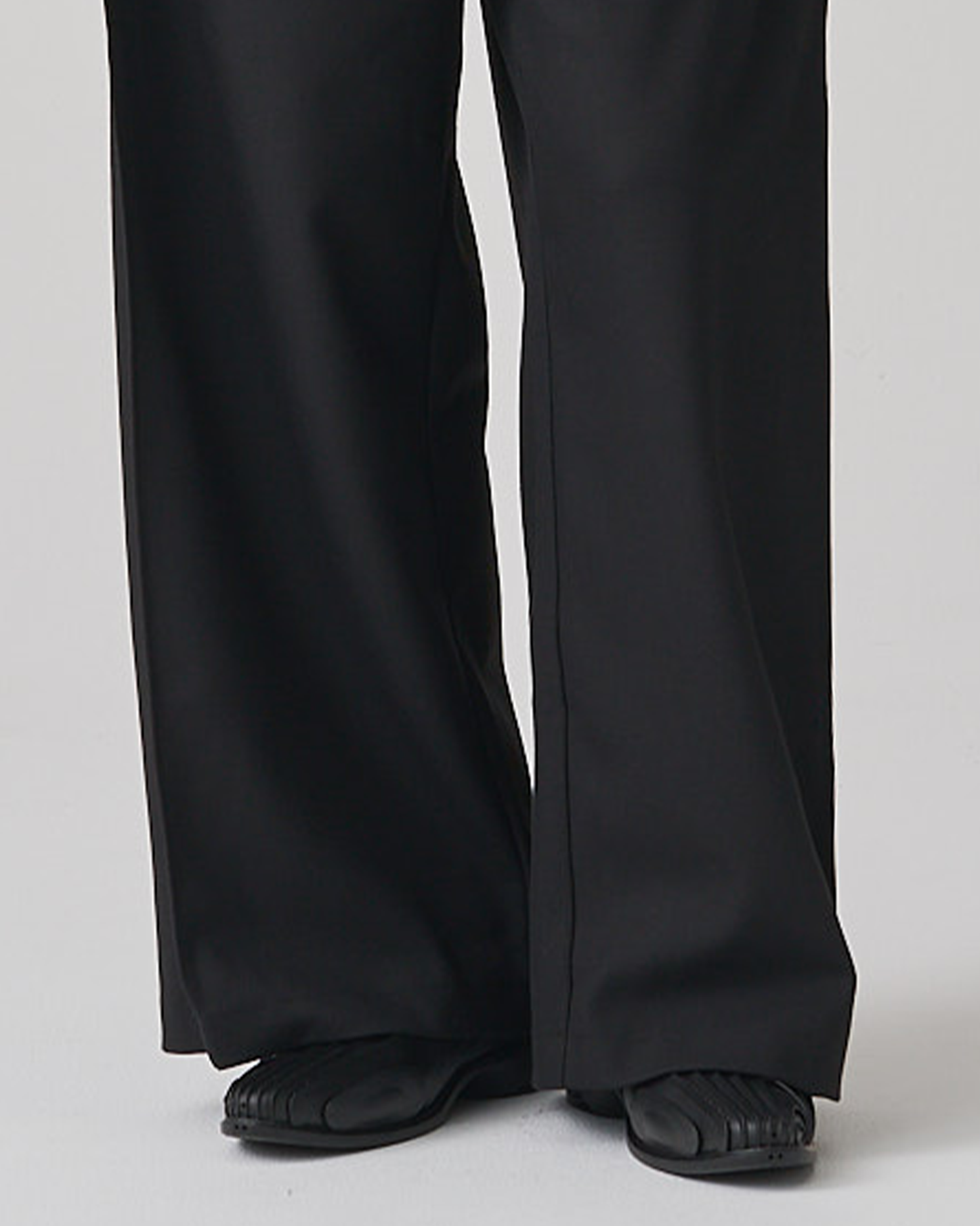 We have designed a minimalist track pant, using a side pleat to give a wide-fit.