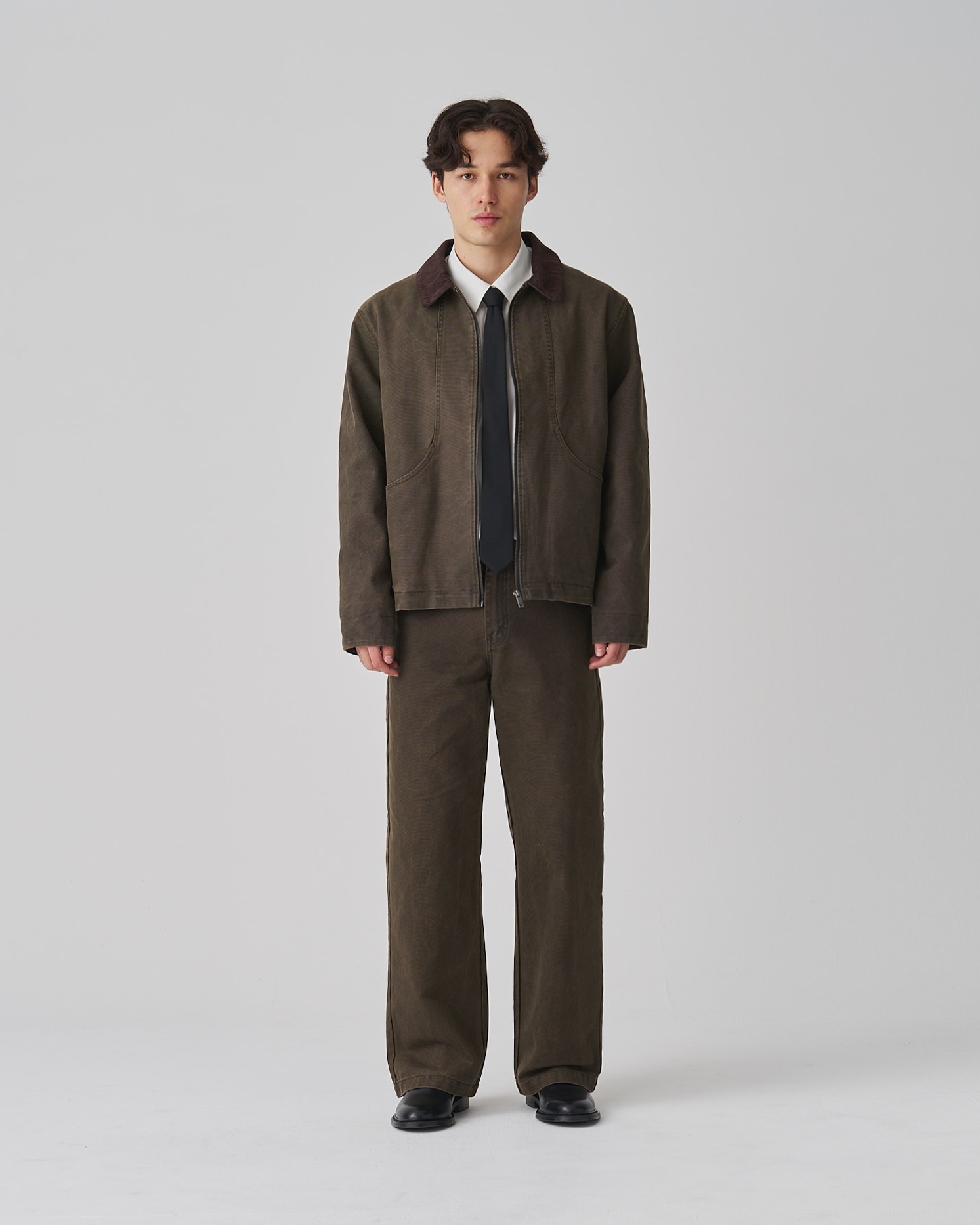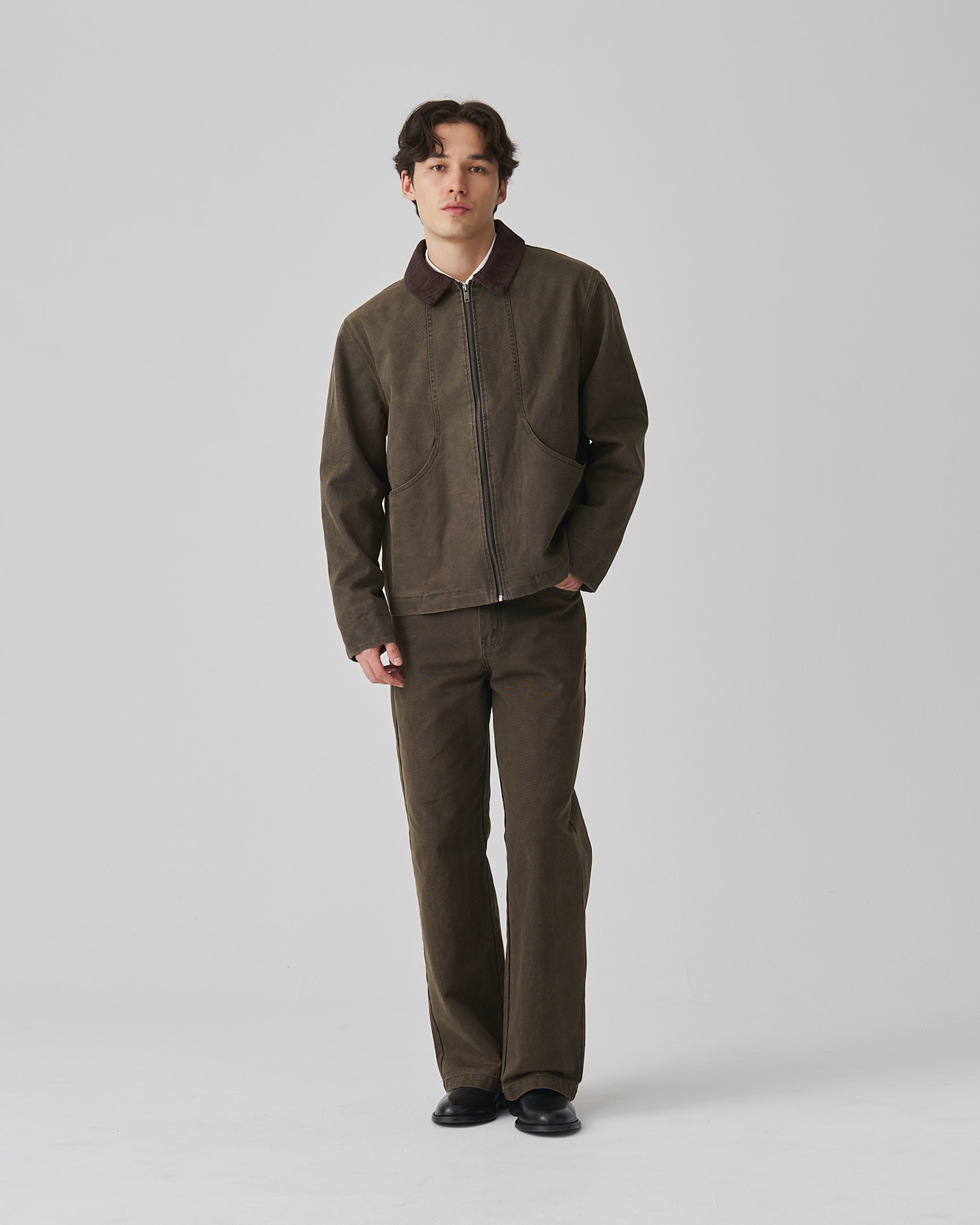 The cropped length pairs well with high-rise trousers or relaxed workwear pants. Designed to work open or closed. Can accomodate one or two under layers.